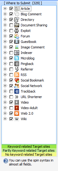 ✅ Article directories✅ Blog comments (Only selected CMS for quality)✅ Directories✅ Document sharing sites✅ Forums✅ Microblogs✅ Video sharing sites✅ Wiki sites✅ Social bookmarks✅ Social networks✅ Web 2.0s (Limited selection for quality)